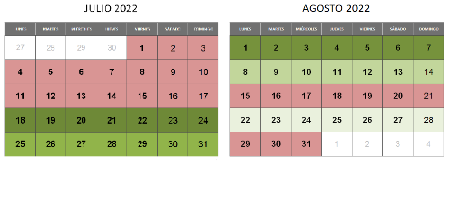 En el calendario, aparecen en tonalidades de verdes, las semanas que puedes elegir para los distintos BONOS FLEXIBLES.